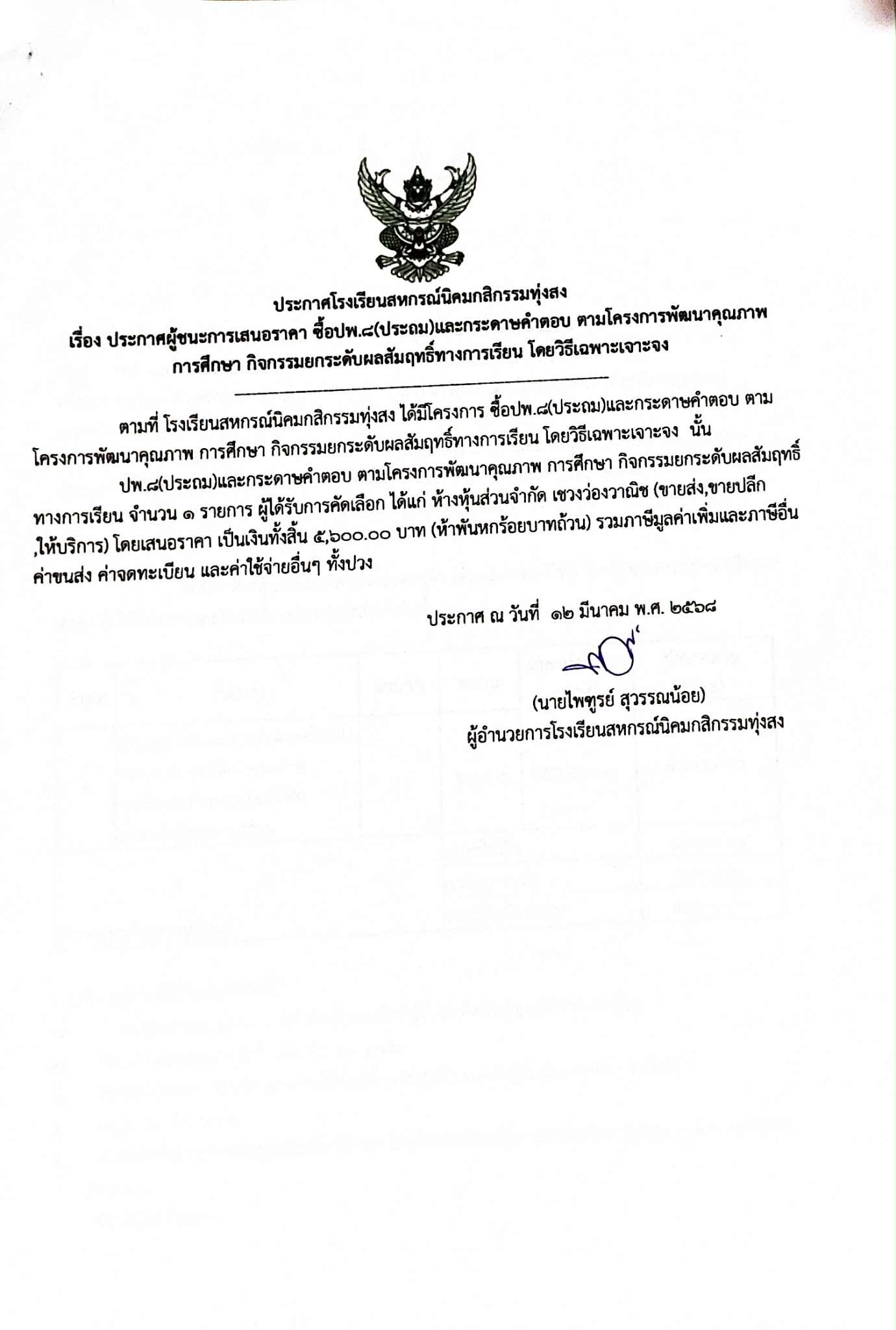 ประกาศผู้ชนะการเสนอราคา จัดซื้อปพ.8